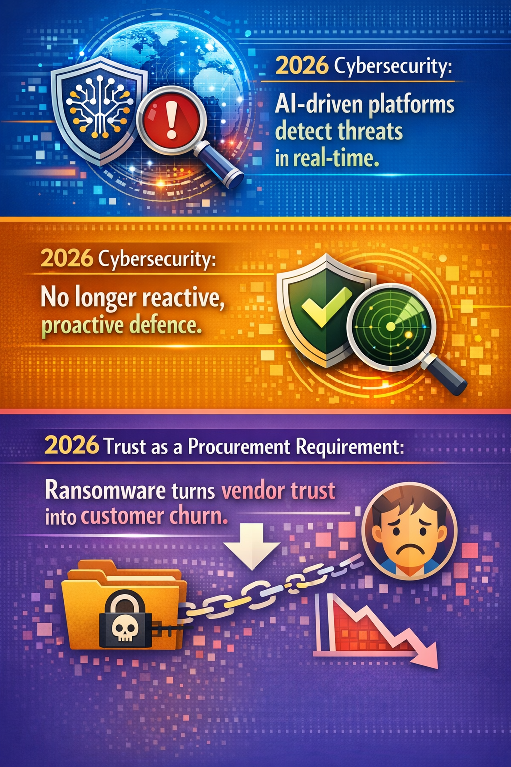 This evolution could also recalibrate trust paradigms in procurement and supply chain security. In 2026, trust is becoming less a marketing claim and more a procurement requirement; AI-enabled security might become a mandatory baseline, as ransomware remains one of the fastest paths from vendor failure to customer churn and litigation (Tech Startups 2026).