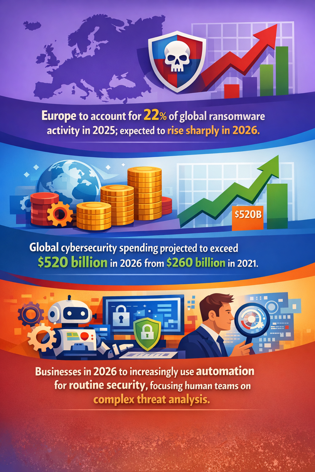 - Investment surge in cybersecurity: Global cybersecurity spending is projected to exceed $520 billion by 2026, reflecting the urgency organizations place on addressing emerging threats, including third-party risks (Cybersecurity Ventures).