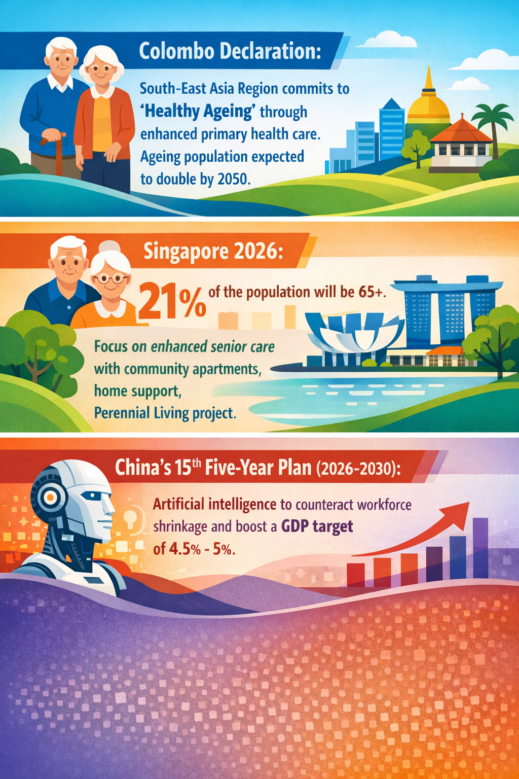In Southeast Asia, the World Health Organization’s Colombo Declaration emphasises strengthening primary healthcare to support healthy ageing, highlighting recognition that demographic shifts will intensify pressure on health and social systems (News.lk 15/04/2026). This approach foregrounds social infrastructure adaptation over disruptive industrial recalibration seen in China.