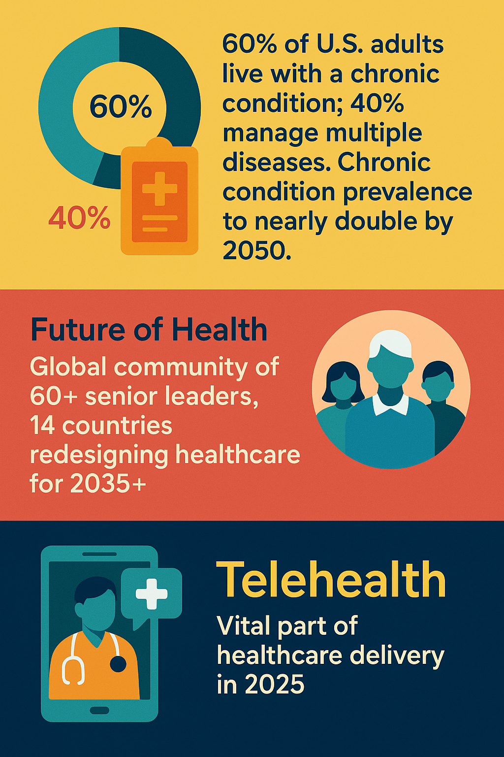 - Global healthcare redesign initiatives: A coalition of leaders across health systems, academia, government, and industry is advancing plans to redesign healthcare for 2035 and beyond—emphasizing person-centered care, equity, and technological integration. This signals broad, systemic pressure in multiple sectors to rethink health infrastructure (PR Newswire).