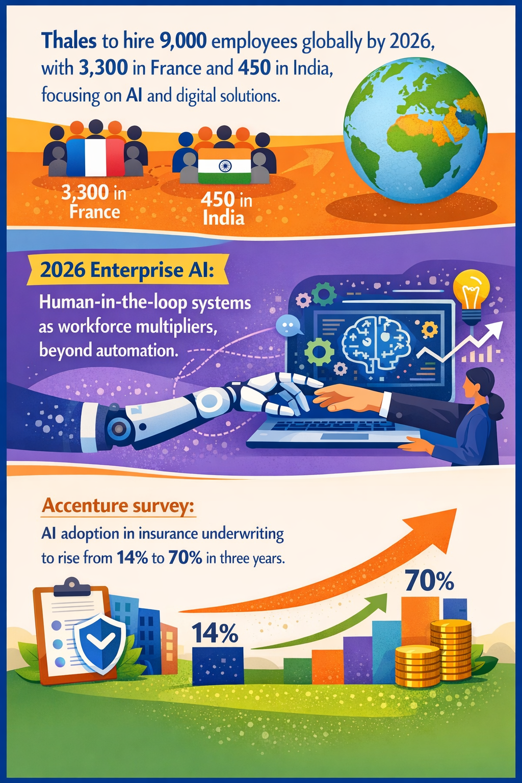 - Thales will hire 9,000 new employees globally, including 3,300 in France and 450 in India in 2026, as the aerospace, defence and digital solutions provider looks to bolster its capabilities in new age technologies, including artificial intelligence. Economic Times. https://telecom.economictimes.indiatimes.com/news/enterprise-services/thales-announces-hiring-of-9000-employees-globally-450-in-india-by-2026/128112109
