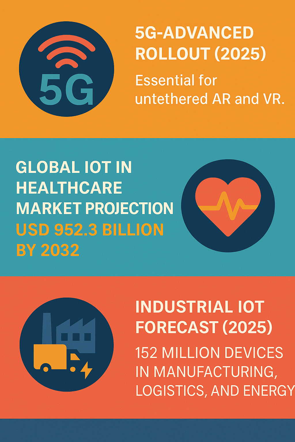 Underlying these connectivity advances is a larger IoT transformation. Industrial IoT devices are projected to surpass 152 million by 2025, across sectors automating manufacturing lines, monitoring energy grids, and managing vast logistics chains (Quantumrun). By 2035, IoT might evolve from an enabling technology into the foundational infrastructure layer of digital enterprises, relying heavily on ubiquitous, hybrid connectivity (Ian Khan).