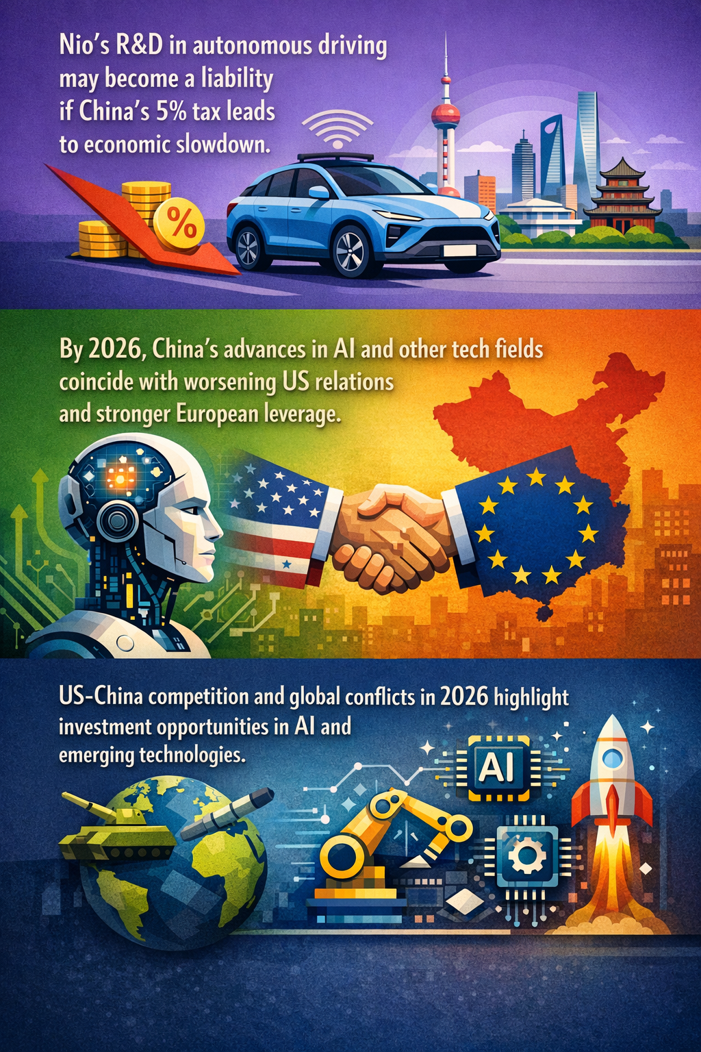 - If the 5% tax in China leads to a sustained domestic slowdown, Nio's high R&D burn rate - currently focused on autonomous driving and its Full Stack technology - could become a liability rather than an asset. Chronicle Journal, 2026.