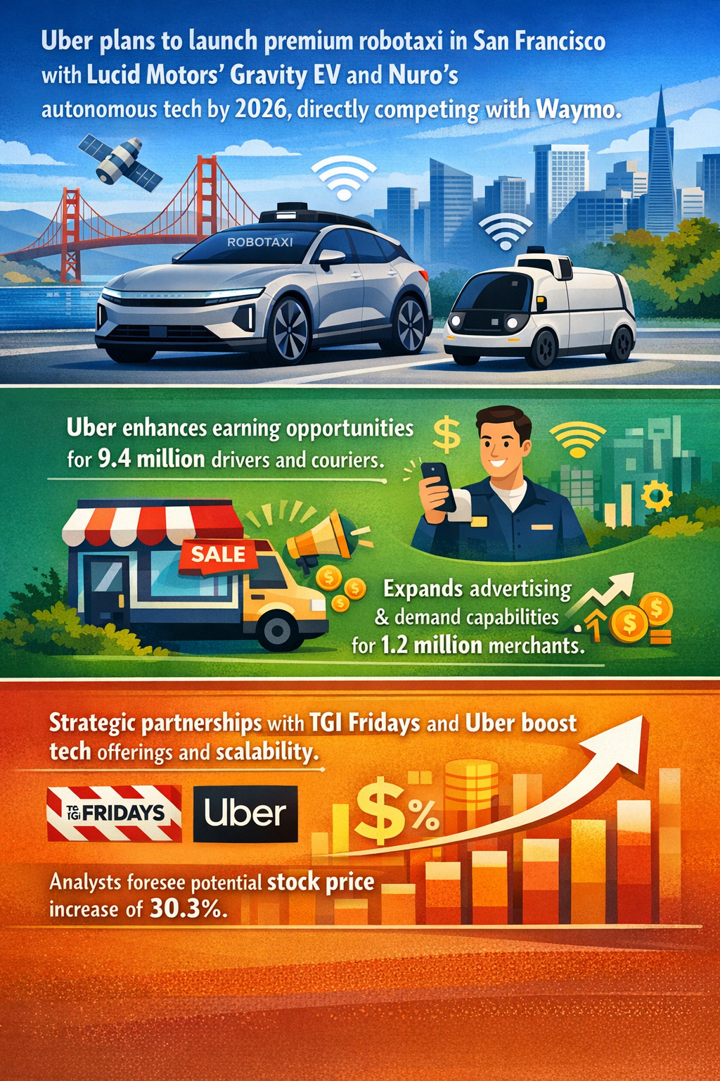 - Uber’s push into autonomous and aerial mobility is likely to accelerate sector innovation, increasing consumer expectations for safety, convenience, and multi-modal transport integration.